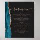 Poster Wedding Bar Menu Teal Blue Rose Gold Agate Dark