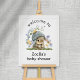 Transform your entryway instantly with this adorable piece of decor. This simple, cute welcome poster for a baby shower sets the perfect tone for your celebration. The design features an adorable bunny and delicate flowers. It is minimal and fits a woodland-themed baby shower or a modern baby animal-themed party. Use this poster for a bright baby shower in spring or a sunny baby shower event in summer. This baby shower welcome sign is a warm way to welcome friends and family to celebrate the baby boy or baby girl.