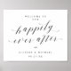 Simple Elegant Calligraphy Script Wedding Reception Sign Welcome to our happily ever after - in beautiful flowing fancy letters and your personalized text. A stylish yet simple formal design in black and white or any background color you choose. Just click the customize further link, shown under the text personalization area on the right, and choose your custom color background. This sign poster template makes it fast and easy to create stunning additions to your wedding decor. Signs can be enlarged, there are many sizes to choose from, as well as options for custom framing and matting. Welcome custom signage.