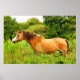 Um bonito e fofo pônei de montanha pastoreando num campo de verão. Aquarela. País de Gales.