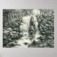 Not all waterfalls are loud and crashing. Some fall gently to inspire feelings of peace and serenity. A beautiful scene of nature rendered with black charcoal on off-white strata. Drawing by Amanda Diehl.