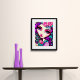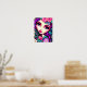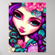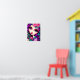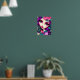 Esta é uma poster divertida com uma ilustração caprichosa de uma menina em roxo, rosa e turquesa.