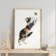 Poster Whimsical Calico Cat & Butterfly Watercolor Art