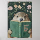 Whimsical Groundhog Reading Book Art Print - Literary Animal Wall for Cozy Reading Nook
