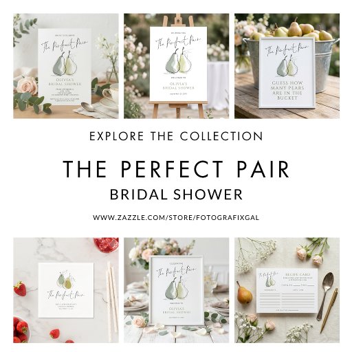 Whimsical Perfect Pair Doodle Pears Welcome to Bridal Shower. Available digitally and printed. The Perfect Pair is in a non-editable script. Easily personalise the rest of the words as required. With whimsical scribbly pears with sage green accents .