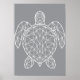 Poster White Geometric Wireframe Sea Turtle