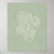 This minimalist botanical illustration features elegant white line art monstera leaves set against a soft sage green background. The clean outlines and gentle green tone create a calm, modern, and nature-inspired aesthetic that feels fresh and timeless.