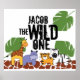 Escolha o tamanho de que precisa, este poster para o seu pequeno selvagem com animais safari divertidos. Ilustrações bonitas de uma girafa, hippo, tigre, zebra e folhas da selva.