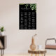 Este poster de assentos alfabéticos pretos de palma selvagem é perfeito para um casamento de praia ou destino. Este sinal pode ser usado para organizar seus convidados em ordem alfabética ou por número de tabela. A design apresenta um exótico conjunto de folhas de palmeiras, samambaias, folhagem, plantas botânicas e verde de cor aquática verde para uma ousada sensação tropical de verão. Esta poster de casamento inclui espaço suficiente para cerca de 120 convidados. Deixe espaço para mais (ou menos) convidados clicando no botão "personalizar" e diminuindo ou aumentando o tamanho da fonte. Além do posicionamento de cada convidado, personalize este cartaz com os nomes da noiva e do noivo e a data do casamento.