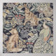 The Forest tapeçaria (detalhe) por William Morris, 1887. A tapeçaria inclui uma raposa, um corvo, um leão e um pavão.