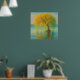 Trabalho de arte de uma árvore salgueira cercada por um corpo de água; em um estilo de pintura pastel. Uma majestosa árvore salgueira em pé pacificamente em meio à água que está mergulhando. Esse trabalho de arte capta um salgueiro solitário, suas folhas luminosas, beijadas ao sol, um motim de amarelos e laranjas, chorando suavemente na água aplaudida abaixo. A superfície da água está viva com derrames de turquesa, safira e reflexões da cobertura do ouro, criando uma exibição de luz mesmerizante. Esta trabalho de arte é uma celebração da beleza natural e da "magia" da luz sobre a água, ideal para aqueles que apreciam detalhe emparelhado e uma paleta de cor suave. Esta peça pode ser personalizada, impressa e ou descarregada.