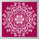 Esta mandala branca senta-se sobre um fundo cor-de-rosa escuro. A cor é muito rica e sofisticada. Parte da coleção Losonieth Mandala.