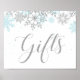 Winter Onederland Gifts Sign in Blue and Silver Snowflakes.