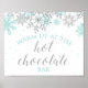 Winter Onederland, primeira festa de aniversário de bar de chocolate quente, placa de chá e flocos de neve prateados.