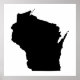 A forma do estado de Wisconsin em preto. Você pode alterar a cor de fundo e adicionar uma mensagem de texto em uma fonte brilhante para personalizar uma lembrança personalizada.