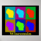 Pop de Arte colorida mapeia silhuetas do estado de Wisconsin.