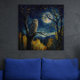 Poster Wise Owl tocando em uma árvore debaixo da lua chei