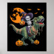 Poster Witch Skeleton Riding Dinosaur T Rex Halloween Fun