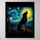 Poster Wolf Starry Night Howling Moon Engraçado Para Home