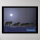 Noite Brilhante. Numa noite de inverno fria, cruel e lua; uma matilha de lobos faminto caça para ficar viva. A leitura de texto "Canadá" aparece em azul e branco brilhantes.