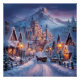 Winter Wonderland: A Twilight Village at the Mountain's Foot A respiratória da ilustração da arte digital que mostra uma charmosa vila de inverno aninhada no pé de uma montanha majestosa. A vila está envolta em um cobertor de neve, com um trajeto sinuoso em direção a um grande castelo iluminado por luzes quentes e convidativas. A cena é banhada no brilho suave do crepúsculo, criando uma atmosfera cativa e encantadora.