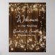 Wood Rustic White Floral String Luzes Boas-vindas Sinais de Boas-vindas - Esta elegante madeira marrom e sinal de boas-vindas com lindas luzes de cordas e floral branco pode ser personalizado com sua informação de Casamento. (o produto não é efetivamente fabricado a partir de madeira)
