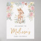 Bonito florais cercam o veado fofo neste sinal de boas-vindas ao Chá de fraldas doce.
