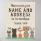 Mostre nosso sinal de chá de fraldas temático da floresta para pedir aos hóspedes que se dirijam a eles próprios. Forneça envelopes de vazio e algumas canetas e deixe nosso sinal solicitar aos convidados que escrevam seu nome e endereço no envelope. Isso ajudará a mamãe a poupar tempo e o incômodo de encontrar endereços quando for hora dela escrever notas de agradecimento! Os animais florestais incluem raposa, alce, urso, coelho e guaxinim.