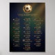 Celebrate the monumental venues and host countries of the world's most watched sporting event. This professional infographic features detailed gold-line architectural illustrations of every World Cup Final stadium from 1930 to 2022. Each entry includes the stadium name, city, and the national flag of the host country. Set against a deep, atmospheric gradient background with a glowing 3D football, this elegant artwork is the ultimate sophisticated wall decor for soccer fans, architects, and sports historians alike.