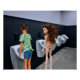 Two people are in a men's restroom, observing each other using the urinals, with one wearing a short dress and looking very much like a female.