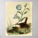 Pintura vítrea de uma chave branca garganta com lindas flores azuis. Ilustrado na Era Vitoriana, 1862 pelo artista e ornitólogo americano John Cassin.