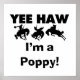Yee Haw Eu sou uma camiseta com papoila, canecas, cartões, adesivos, botões de anúncio, keepsakes de papoila, e outros roupa de papoila e presentes com um cavalo de jardim e design de texto preto ou branco. Esses itens de roupa e presentes são perfeitos para avós pela primeira vez ou papoilas temperadas de uma nova chegada!