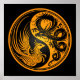 Pôster Yellow and Black Dragon Phoenix Yin Yang