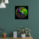 Yin yang tree of life em cores vibrantes roxas e verdes.