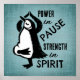Esta design pacífica apresenta um simples pinguim desenhado à mão em uma pose de árvore, colocado contra um plano de fundo azul calmante em textura de canvas. Ao lado da mensagem inspiradora, "Poder em pausa, força no espírito," este trabalho de arte combina gentilmente atenção com silêncio de resiliência e motivação. O estilo minimalista e a paleta de cores suaves criam uma vibração firme e ponderada — perfeita para amantes de ioga, praticantes de meditação e qualquer pessoa que busque equilíbrio, força interior e uma mensagem motivacional. Um lembrete visual sossegado de que a firmeza pode ser poderosa, e a força começa dentro.