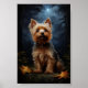 Yorkshire terrier em uma noite de lua em um deserto florestal