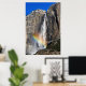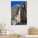 Esta foto mostra o inverno em Yosemite Falls com neve e arco-íris em um dia ensolarado.