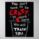 Poster You Don't Have To Be Crazy To Work Here We'll Trai