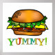 Amantes de hambúrguer gostarão desse hambúrguer delicioso com os trabalhos nele e a palavra Yummy! Compartilhe seu amor pelos hambúrgueres!