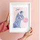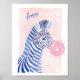 Adicione um toque de fantasia às suas paredes com nossa estampa artística divertida e alegre, apresentando nossa zebra listrada azul pintada à mão em aquarela soprando uma bolha de chiclete rosa brilhante. Personalize este charmoso design com seu nome e monograma para uma peça de decoração verdadeiramente única. Perfeito para berçários, quartos de crianças ou qualquer espaço que precise de um clima alegre e criativo. Esta peça de arte faz um presente encantador ou um mimo especial para você mesmo. Traga um sorriso para a sua parede hoje! Arte desenhada e impressa à mão por © Moodthology Papery