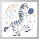 Poster Zebra de Desenho Animado Adorável com Arco-íris e
