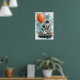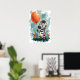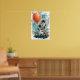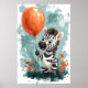 Adicione um toque de capricho ao seu espaço com este adorável pôster apresentando uma pequena zebra segurando um grande balão laranja. O estilo de desenho animado, texturas pintadas à mão e design divertido tornam-no perfeito para um quarto infantil ou berçário. O fundo azul claro com pinceladas e flores laranja vibrantes criam uma atmosfera divertida e comemorativa.