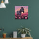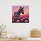 Poster Zebra Única em Pintura de Campo de Rosas Rosa