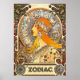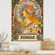 Vintage art nouveau poster do Zodiac. Retrato de perfil de uma mulher com cabelos longos e fluidos cercada pelos sinais das constelações. De um anúncio original do século XIX (1896) de Alfons Mucha. Todos os direitos reservados © 2014 padre art