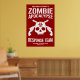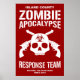 Zombie apocalipse design com crânio de risco biológico e armas cruzadas. Personalize com seu nome, cidade ou organização! Clique em "Personalizar!" e em "Editar" para alterar o plano de fundo para qualquer cor!
