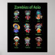 Zombie ao estilo Kawaii representando diferentes países da Ásia: Camboja, China, Índia, Japão, Coreia, Filipinas, Taiwan e Vietnã.