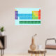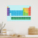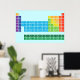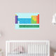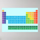 Poster com mesa periódica dos elementos, com cada grupo de elementos marcado em cores arco-íris.