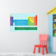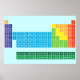 Poster com mesa periódica dos elementos, com cada grupo de elementos marcado em cores arco-íris.