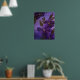 A pintura exibe flores roxas elegantemente desenhadas sobre um fundo abstrato lilac. As flores, em tons que vão de violeta profunda a lavanda macia, são representadas com pétalas delicadas e detalhes intrincados, criando um contraste harmonioso com o pano de fundo macio e misturado. O fundo lilático, abstrato e texturizado, apresenta pinceladas fluentes e variações sutis de tom, dando à composição uma qualidade erérea e sonhadora. As flores roxas parecem flutuar ou emergir naturalmente do fundo, acrescentando um senso de serenidade e graça à imagem geral.