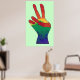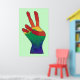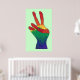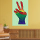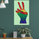 Uma pintura abstrata do sinal de paz feito com a mão usando cores do arco-íris, por CherylsArt, é impressa em pôsteres personalizados. A cor do fundo pode ser personalizada. Eu me diverti usando minha própria mão para criar este design.